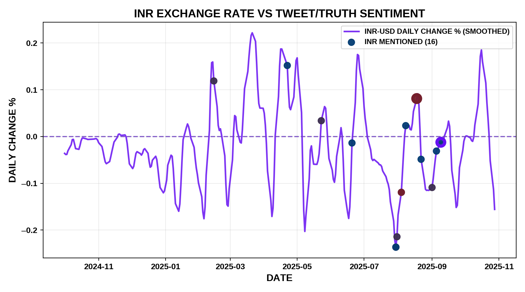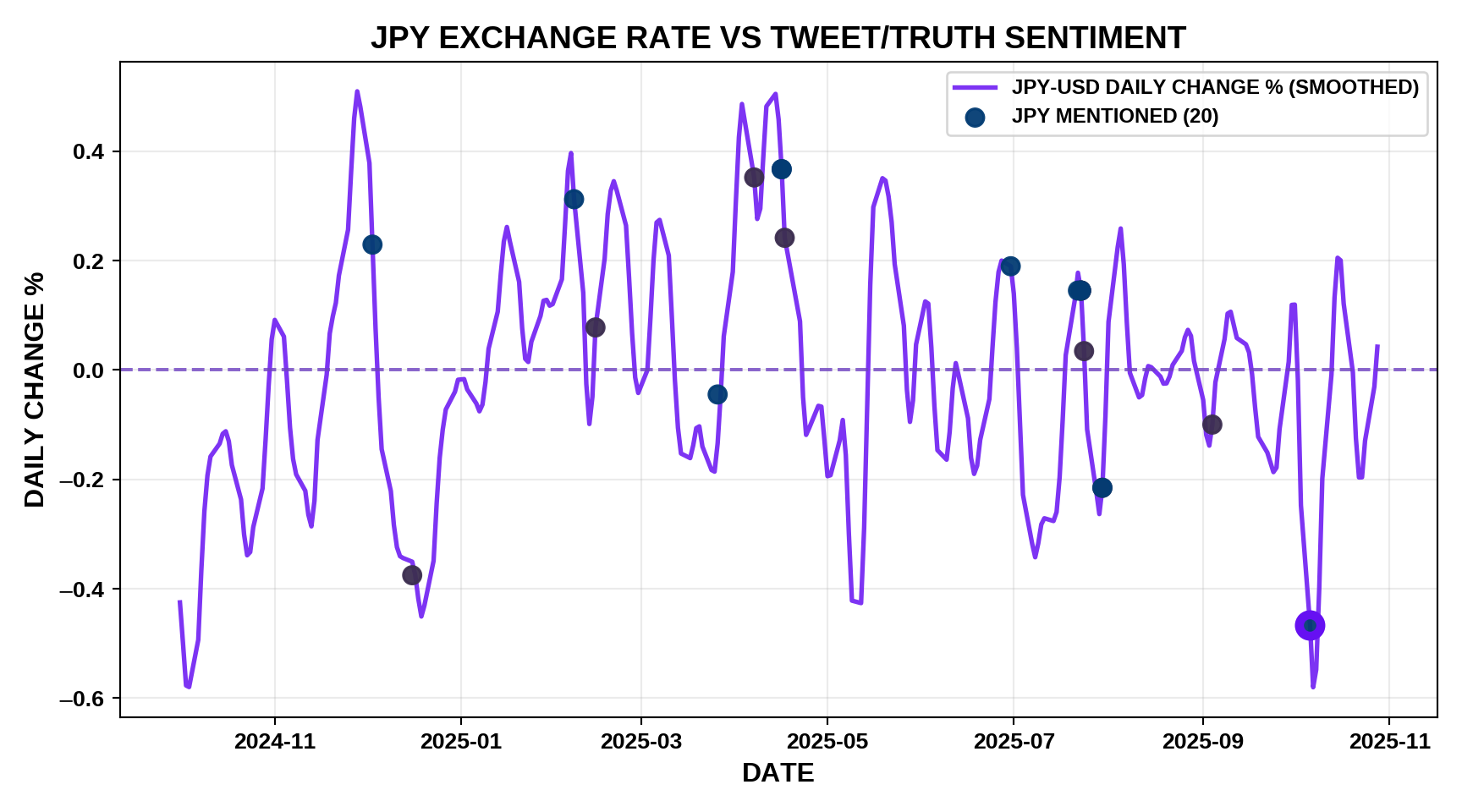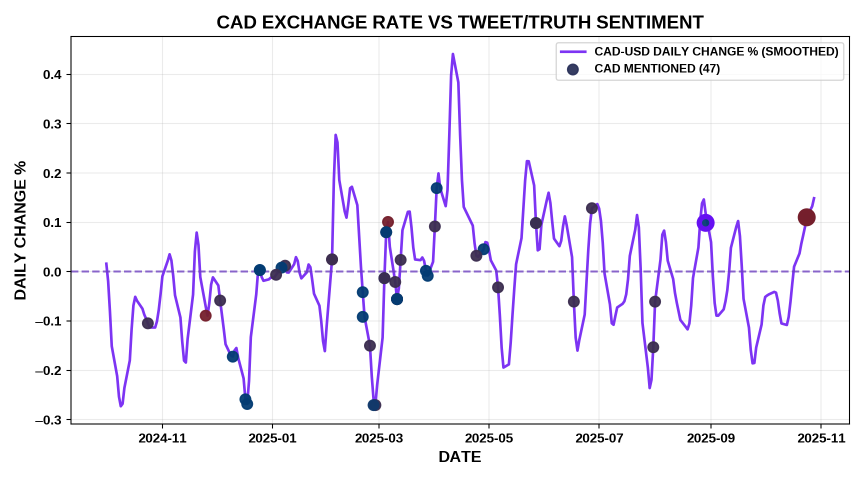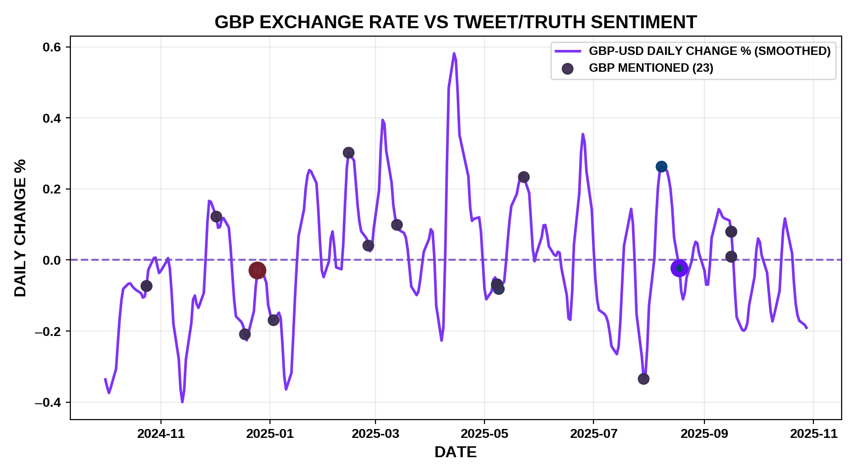 This project started with a simple (slightly chaotic) question: when Donald Trump fires off an emotionally loaded post about another country, does the U.S. dollar actually react?